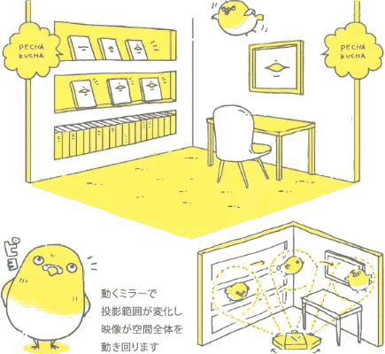 部屋の中で動き回る小さな映像は、リアルな空間を主役に空想の物語の広がりや驚きを与える可能性を秘めています。