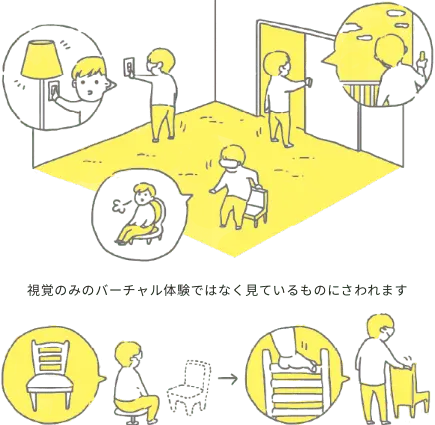 さわれる・すごせるVRは、マンションの特別仕様やブランド標準仕様、商品企画時の検証モデルなど触覚を伴ったより繊細な空間体験が期待できます。