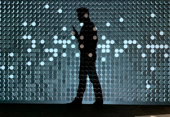 ドアに取り付けた人感センサーと、動線上に設けたフットセンサーに反応し、人のアクションで段階的に映像が切り替わる、リアルな影とデジタルな影を融合させた体感演出としました。
