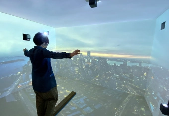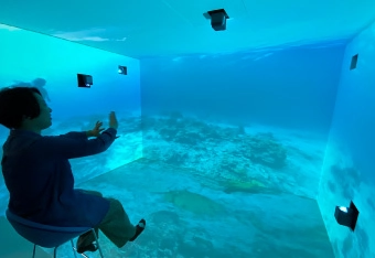 天井・床・壁に映像を映した演出を「没入体験」と表現することはしばしばありますが、体験者の視野・視線・姿勢などのコンディションの違いが体験にどのように作用するのか、実証実験しました。