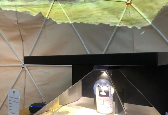 IoTデバイスを活用した演出のコレカラや、ドーム型シアターの見せ方のコレカラを模索するデモスペース。