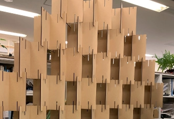 「粗密が変えられる」パーテーションは、高さや抜け感を調整できる設計とし、好きなカラー構成にコーディネート出来たり、必要ない時はコンパクトに収納できるなどの可変性をもたせています。