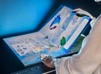 ページをめくるというアナログな動きにデジタルな表現を加えることで、リアルな場でこそ体感できるコンテンツとして、新しい情報との出会いや体験をより特別なものにしてくれます。